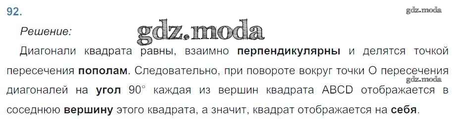 ГДЗ решение к заданию № 92 Геометрия 9 класс рабочая тетрадь Атанасян Л.С. Просвещение 2014 ФГОС бесплатно на гдз.мода!