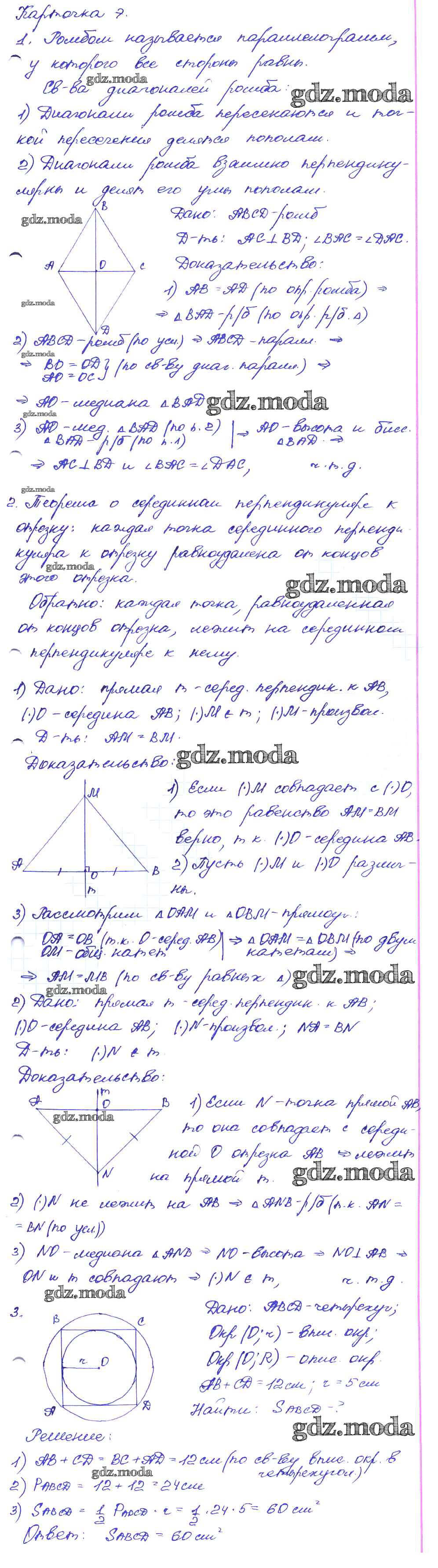 ОТВЕТ на задание № 7 Самостоятельные и контрольные работы по Геометрии 7-9 класс Иченская