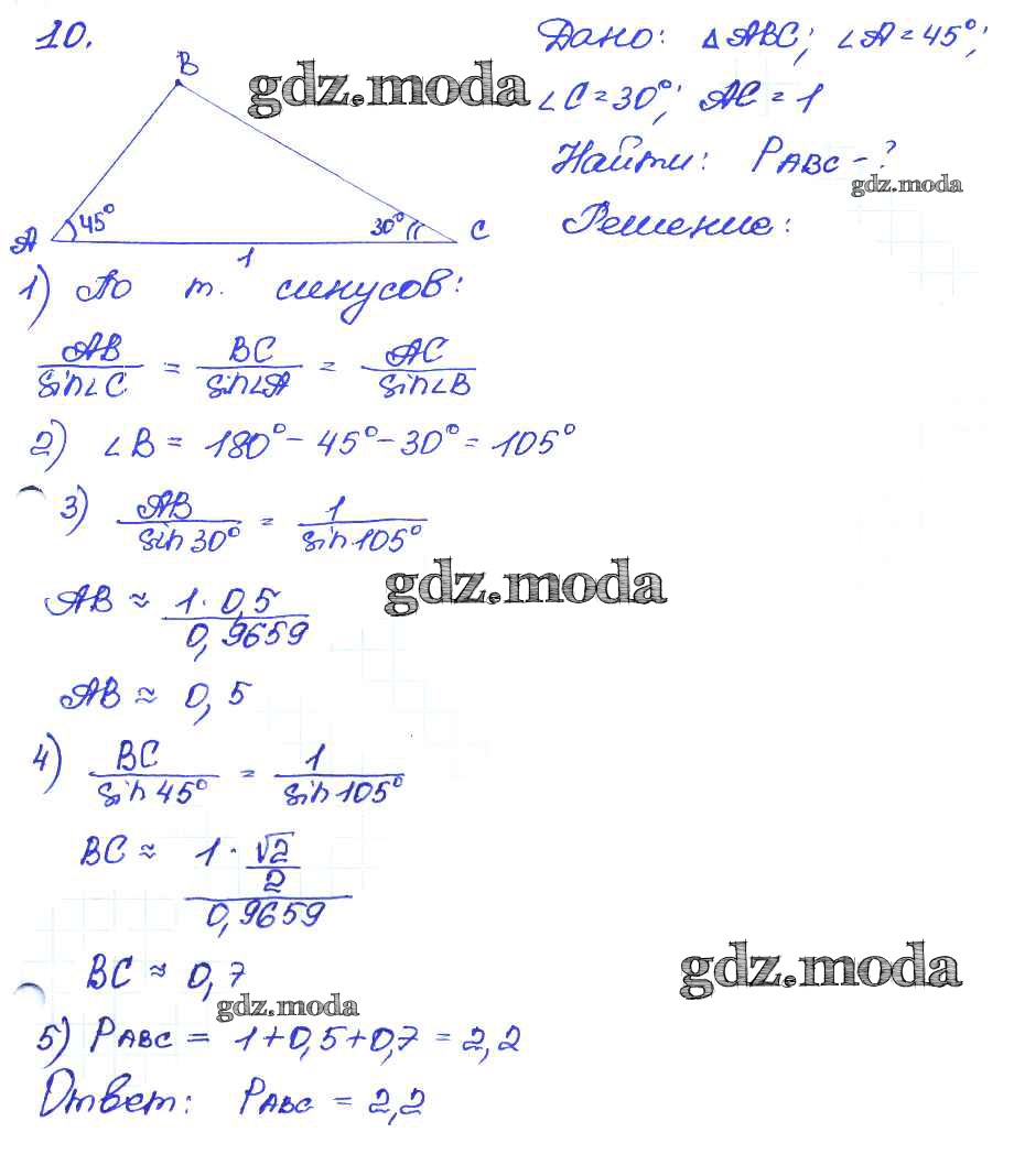 ГДЗ решение к заданию № 10 Геометрия 7-9 классы самостоятельные и контрольные работы Иченская М.А. Просвещение 2017 ФГОС бесплатно на гдз.мода!