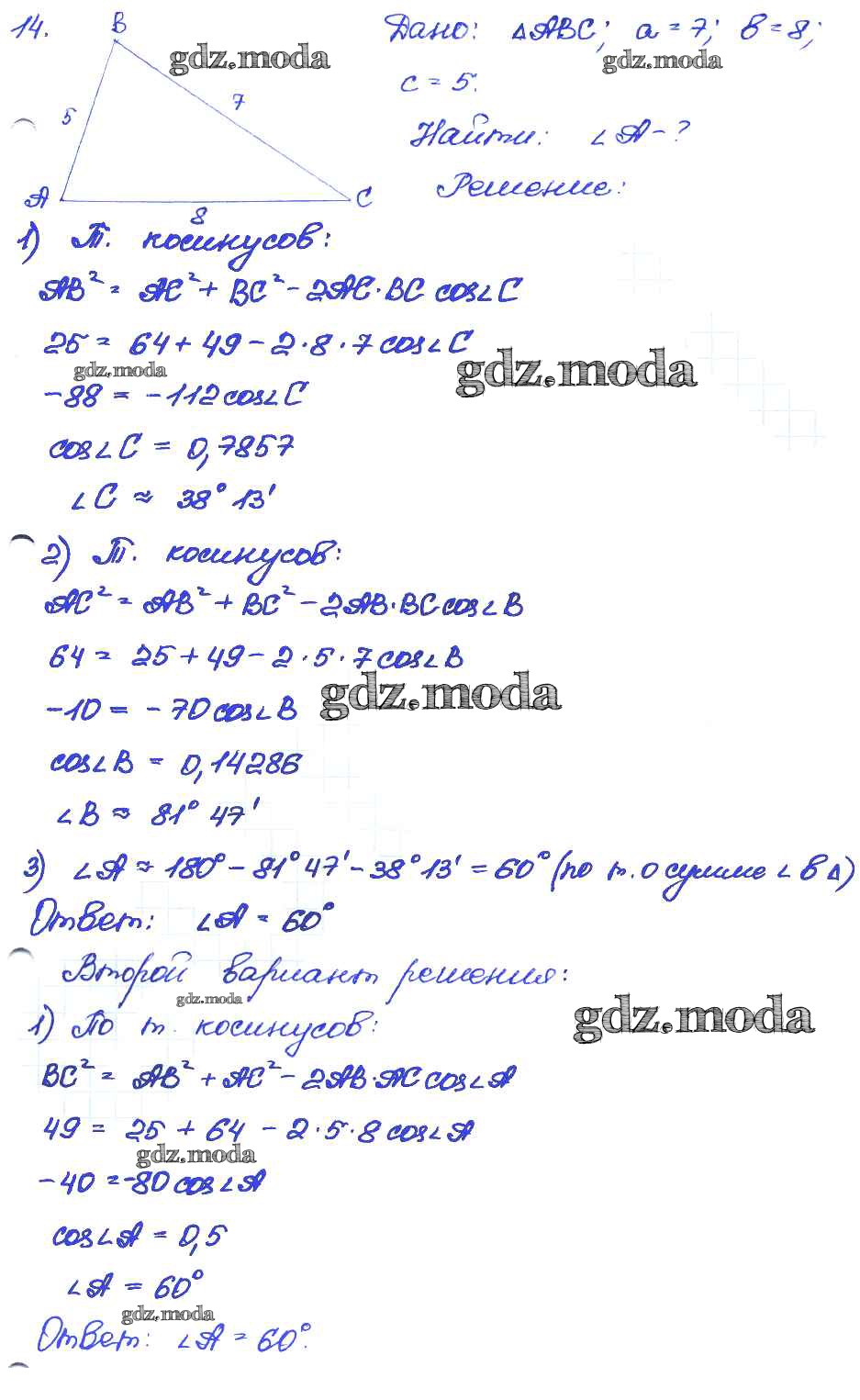 ГДЗ решение к заданию № 14 Геометрия 7-9 классы самостоятельные и контрольные работы Иченская М.А. Просвещение 2017 ФГОС бесплатно на гдз.мода!