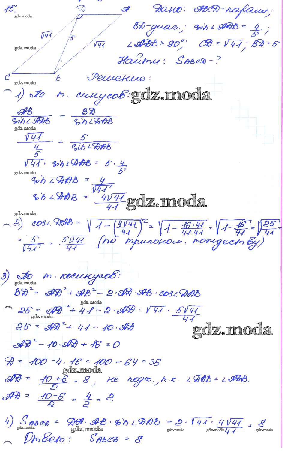ГДЗ решение к заданию № 15 Геометрия 7-9 классы самостоятельные и контрольные работы Иченская М.А. Просвещение 2017 ФГОС бесплатно на гдз.мода!