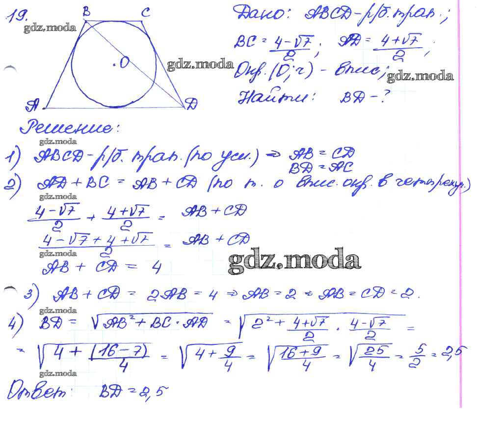 ГДЗ решение к заданию № 19 Геометрия 7-9 классы самостоятельные и контрольные работы Иченская М.А. Просвещение 2017 ФГОС бесплатно на гдз.мода!