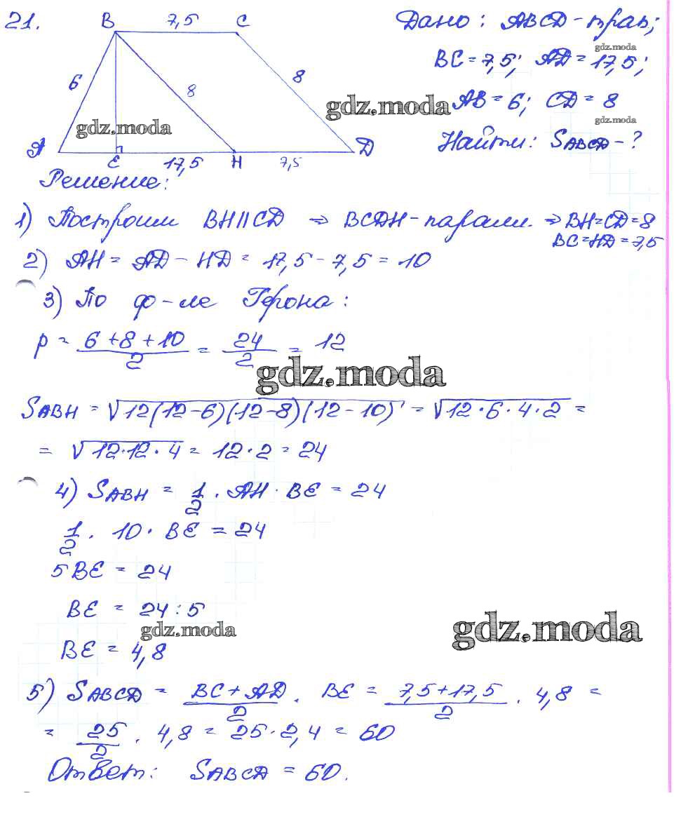 ГДЗ решение к заданию № 21 Геометрия 7-9 классы самостоятельные и контрольные работы Иченская М.А. Просвещение 2017 ФГОС бесплатно на гдз.мода!