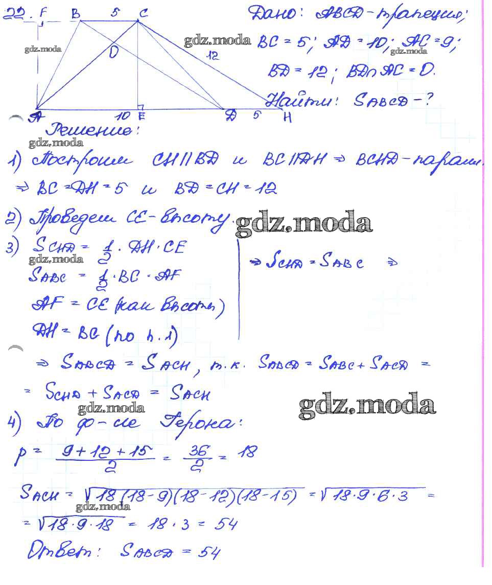 ГДЗ решение к заданию № 22 Геометрия 7-9 классы самостоятельные и контрольные работы Иченская М.А. Просвещение 2017 ФГОС бесплатно на гдз.мода!