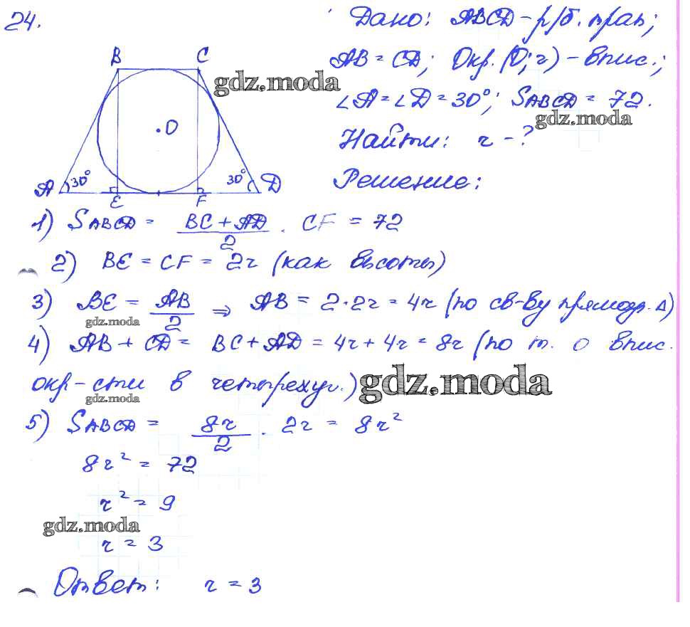 ГДЗ решение к заданию № 24 Геометрия 7-9 классы самостоятельные и контрольные работы Иченская М.А. Просвещение 2017 ФГОС бесплатно на гдз.мода!