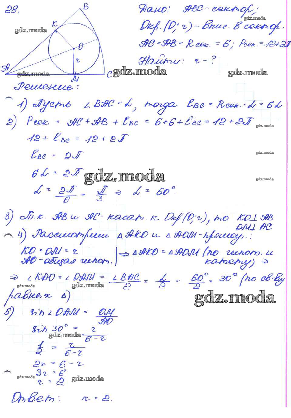 ГДЗ решение к заданию № 28 Геометрия 7-9 классы самостоятельные и контрольные работы Иченская М.А. Просвещение 2017 ФГОС бесплатно на гдз.мода!