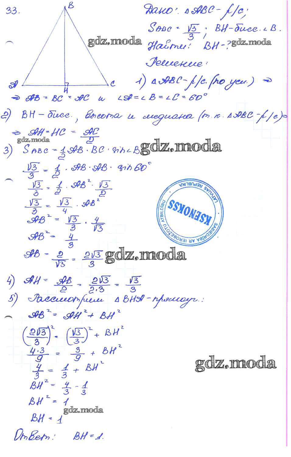 ГДЗ решение к заданию № 33 Геометрия 7-9 классы самостоятельные и контрольные работы Иченская М.А. Просвещение 2017 ФГОС бесплатно на гдз.мода!