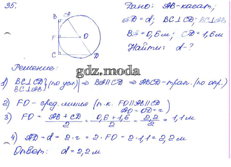 ГДЗ решение к заданию № 35 Геометрия 7-9 классы самостоятельные и контрольные работы Иченская М.А. Просвещение 2017 ФГОС бесплатно на гдз.мода!