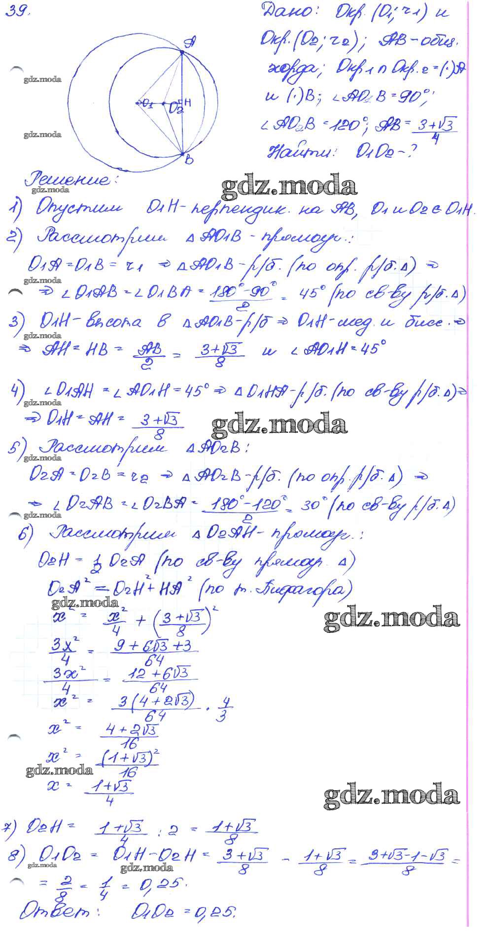 ГДЗ решение к заданию № 39 Геометрия 7-9 классы самостоятельные и контрольные работы Иченская М.А. Просвещение 2017 ФГОС бесплатно на гдз.мода!