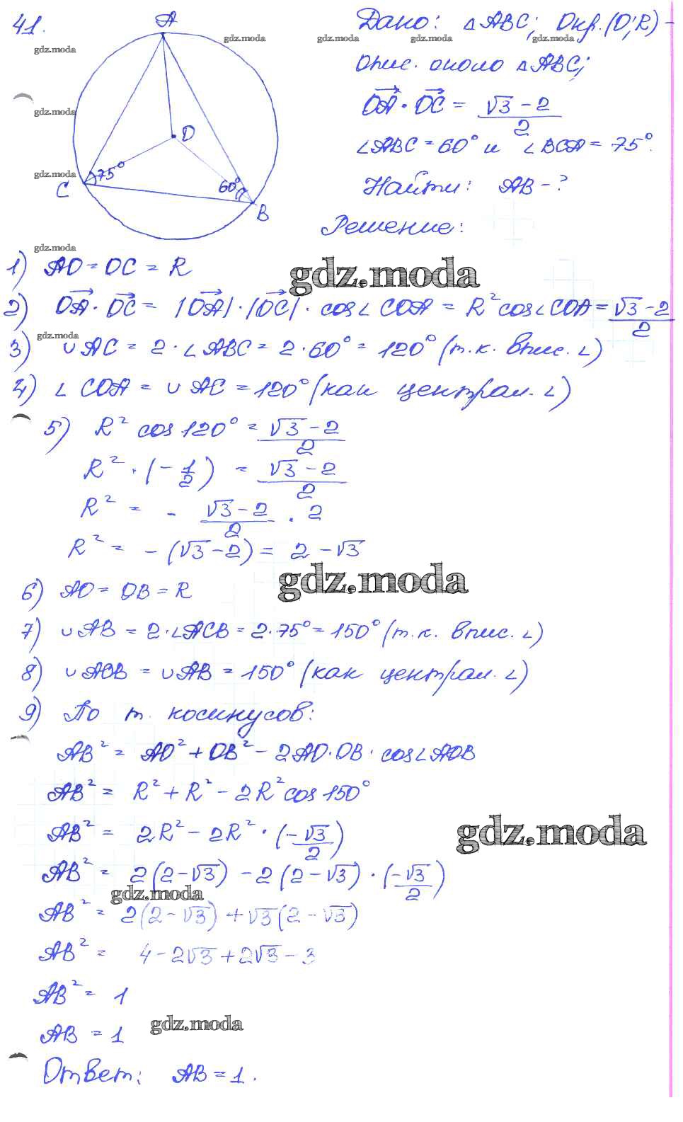 ГДЗ решение к заданию № 41 Геометрия 7-9 классы самостоятельные и контрольные работы Иченская М.А. Просвещение 2017 ФГОС бесплатно на гдз.мода!