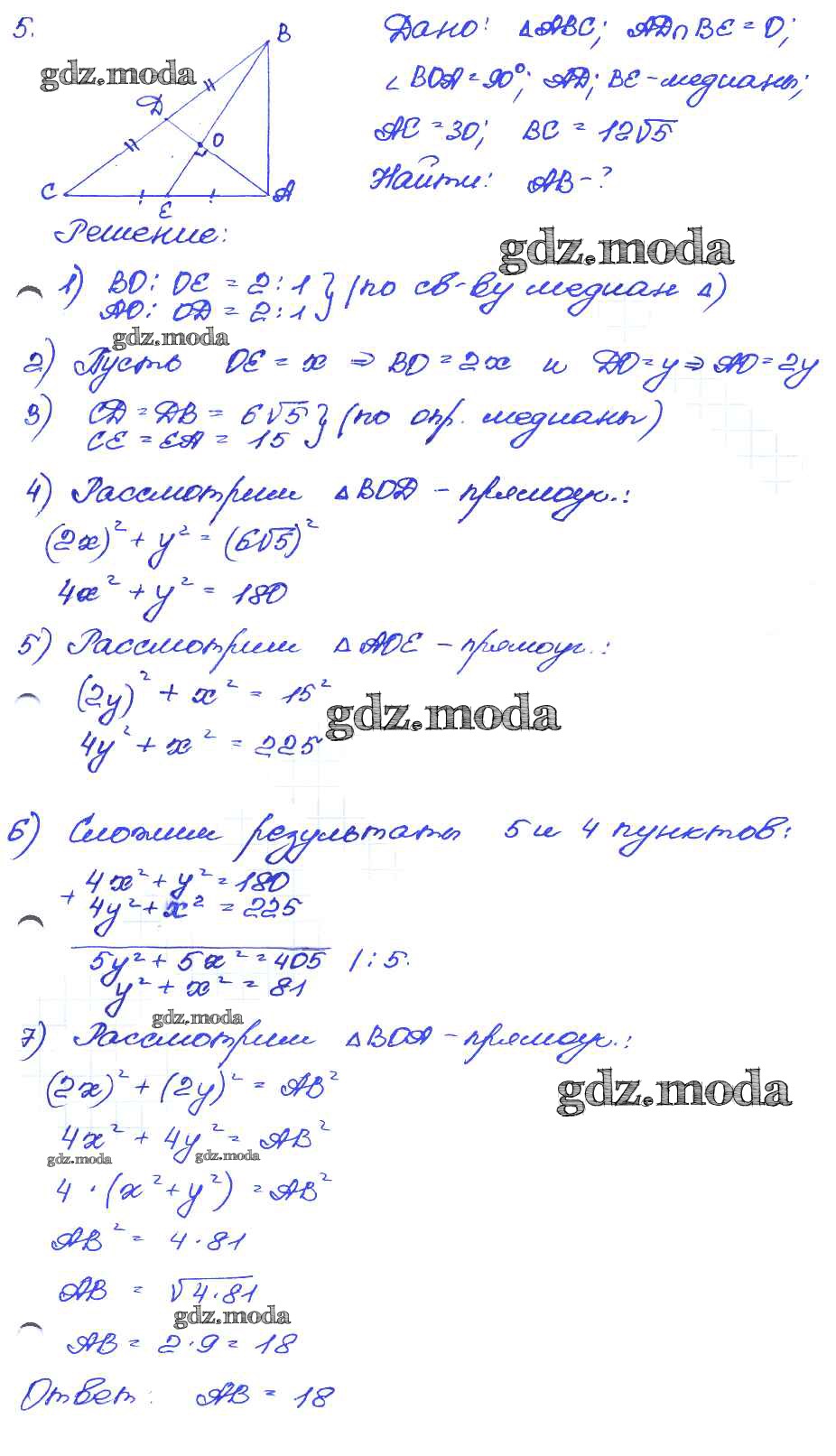 ГДЗ решение к заданию № 5 Геометрия 7-9 классы самостоятельные и контрольные работы Иченская М.А. Просвещение 2017 ФГОС бесплатно на гдз.мода!