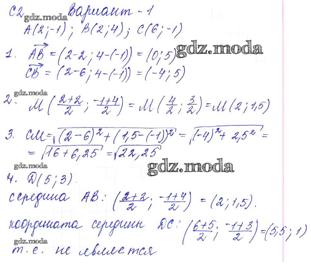 самостоятельные работы / к учебнику Атанасяна / ср-2. вариант / 1