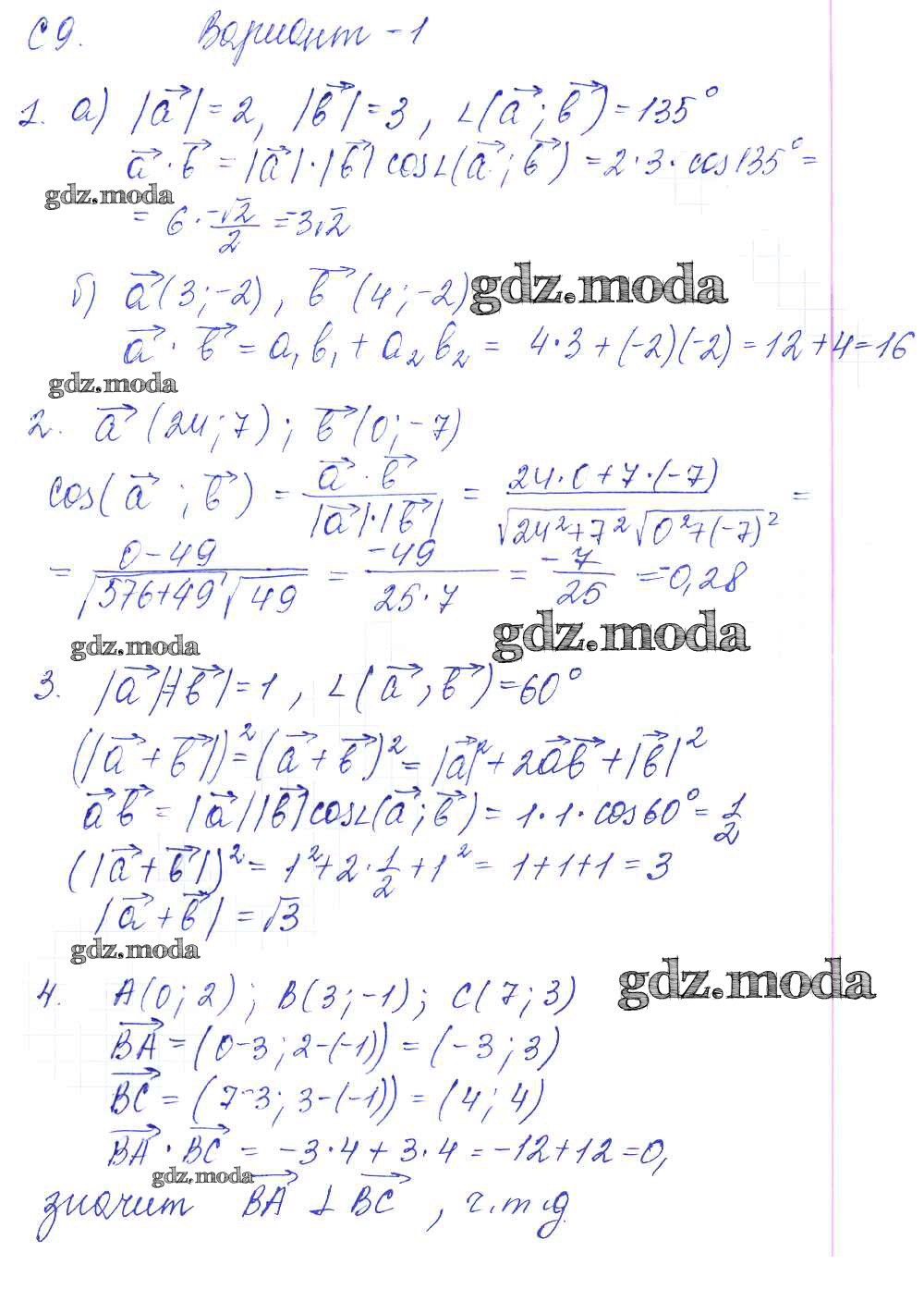 самостоятельные работы / к учебнику Атанасяна / ср-9. вариант / 1