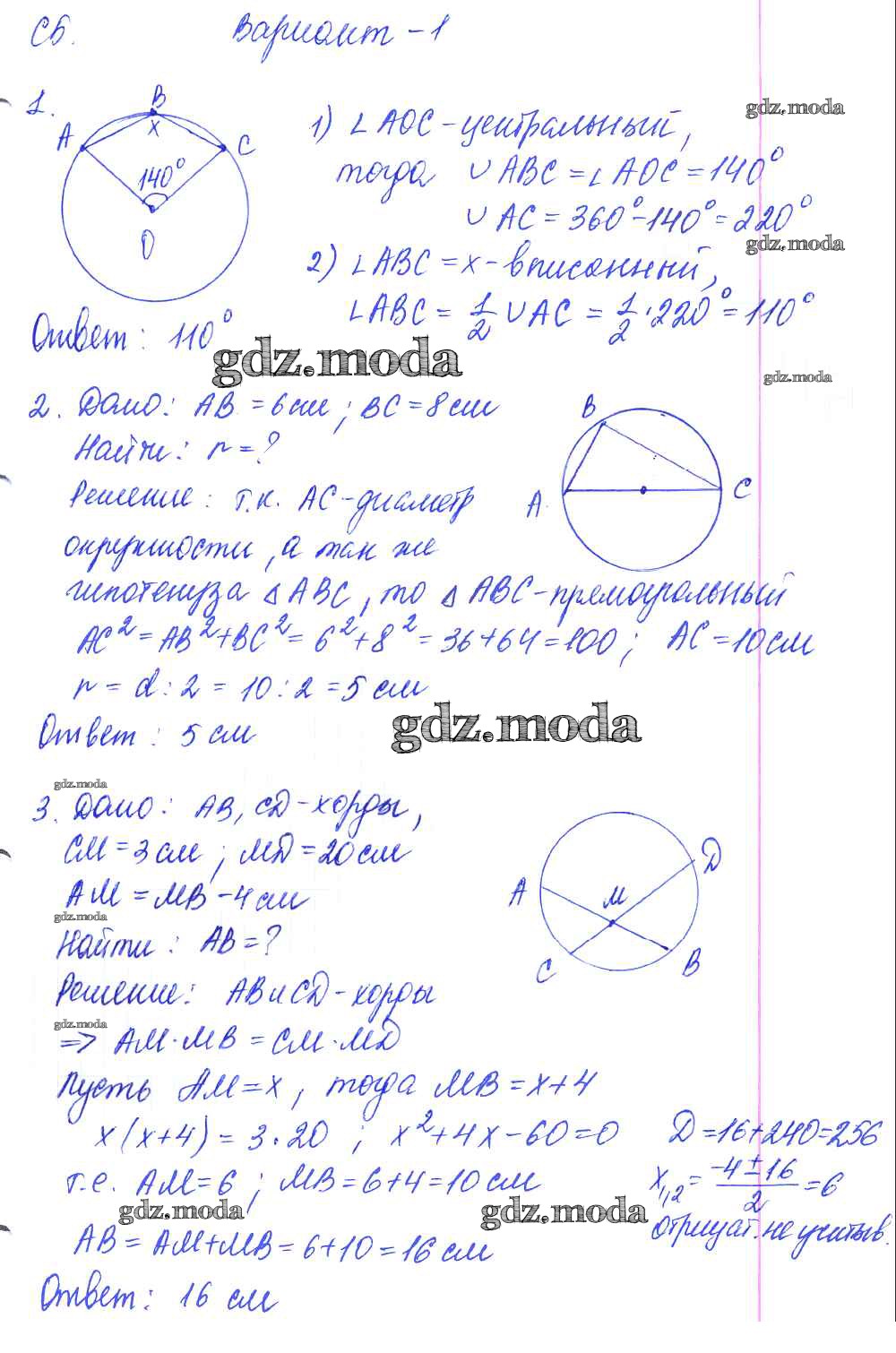 ОТВЕТ на задание № 1 Контрольные и самостоятельные работы по Геометрии 9 класс Журавлев УМК