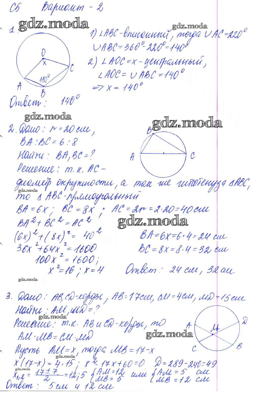 ОТВЕТ на задание № 2 Контрольные и самостоятельные работы по Геометрии 9 класс Журавлев УМК