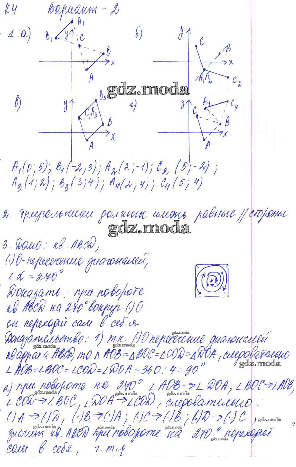 ОТВЕТ на задание № 2 Контрольные и самостоятельные работы по Геометрии 9 класс Журавлев УМК