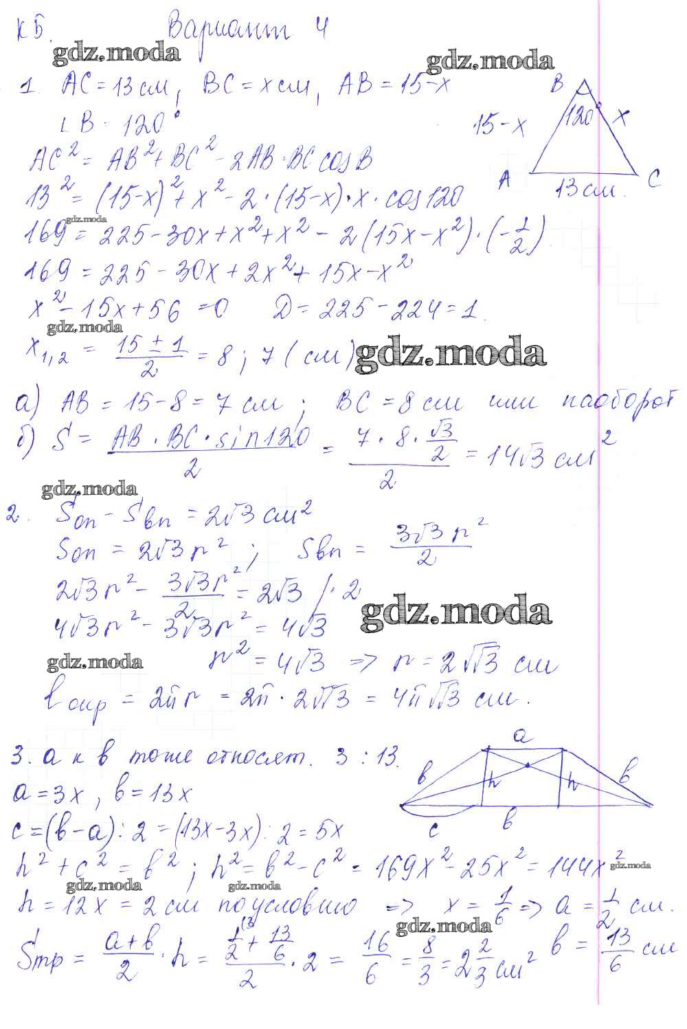 ОТВЕТ на задание № 4 Контрольные и самостоятельные работы по Геометрии 9 класс Журавлев УМК