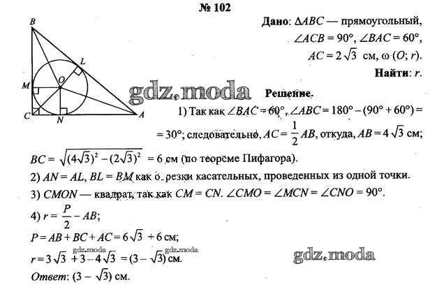 ОТВЕТ на задание № 102 Учебник по Геометрии 9 класс Шлыков