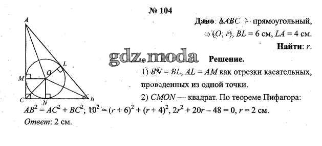 ОТВЕТ на задание № 104 Учебник по Геометрии 9 класс Шлыков