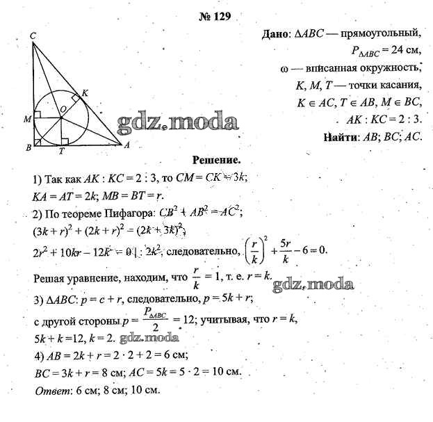 ОТВЕТ на задание № 129 Учебник по Геометрии 9 класс Шлыков