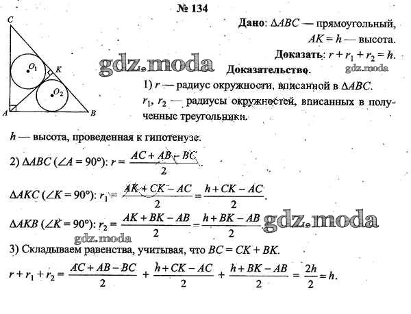 ОТВЕТ на задание № 134 Учебник по Геометрии 9 класс Шлыков