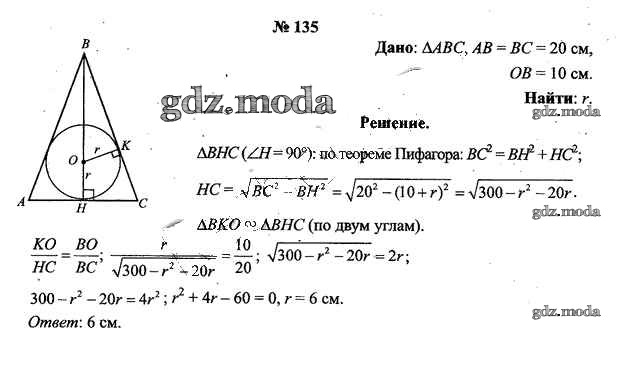 ОТВЕТ на задание № 135 Учебник по Геометрии 9 класс Шлыков