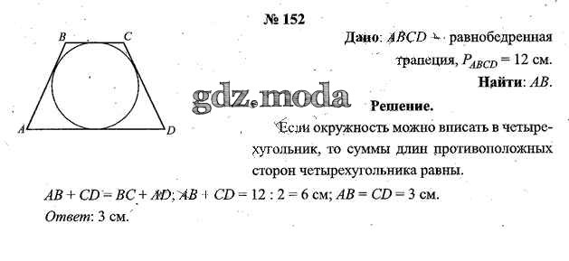 ОТВЕТ на задание № 152 Учебник по Геометрии 9 класс Шлыков