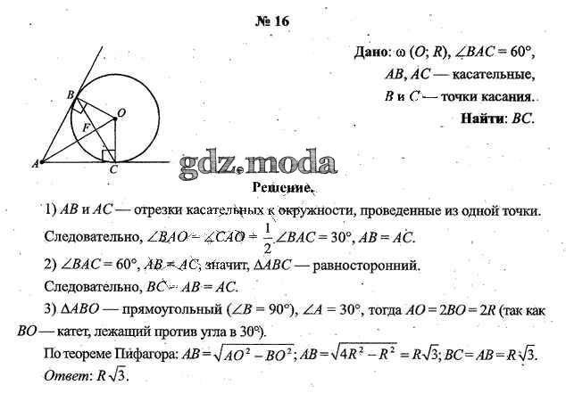 ОТВЕТ на задание № 16 Учебник по Геометрии 9 класс Шлыков