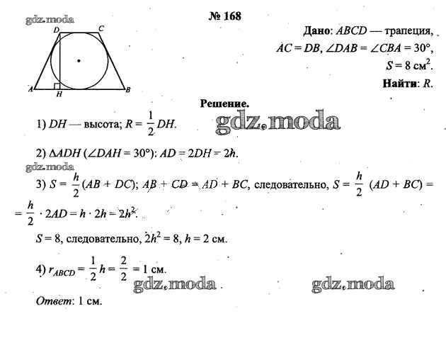 ОТВЕТ на задание № 168 Учебник по Геометрии 9 класс Шлыков