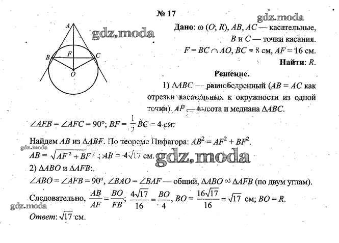 ОТВЕТ на задание № 17 Учебник по Геометрии 9 класс Шлыков
