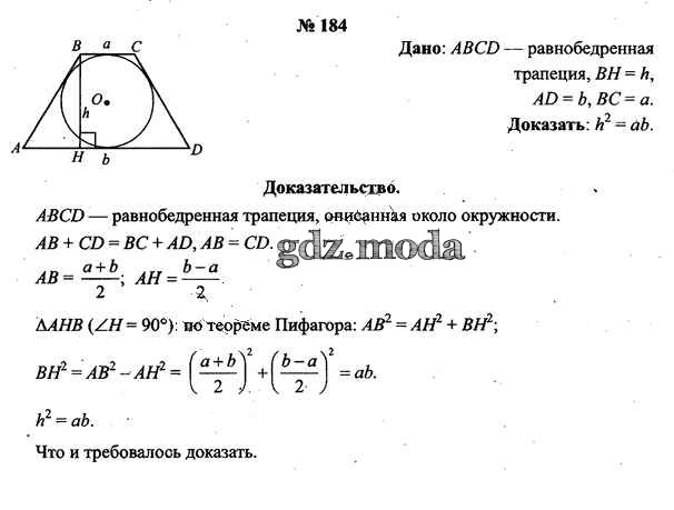 ОТВЕТ на задание № 184 Учебник по Геометрии 9 класс Шлыков