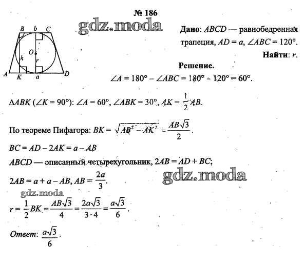 ОТВЕТ на задание № 186 Учебник по Геометрии 9 класс Шлыков