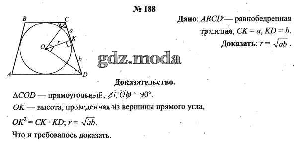 ОТВЕТ на задание № 188 Учебник по Геометрии 9 класс Шлыков