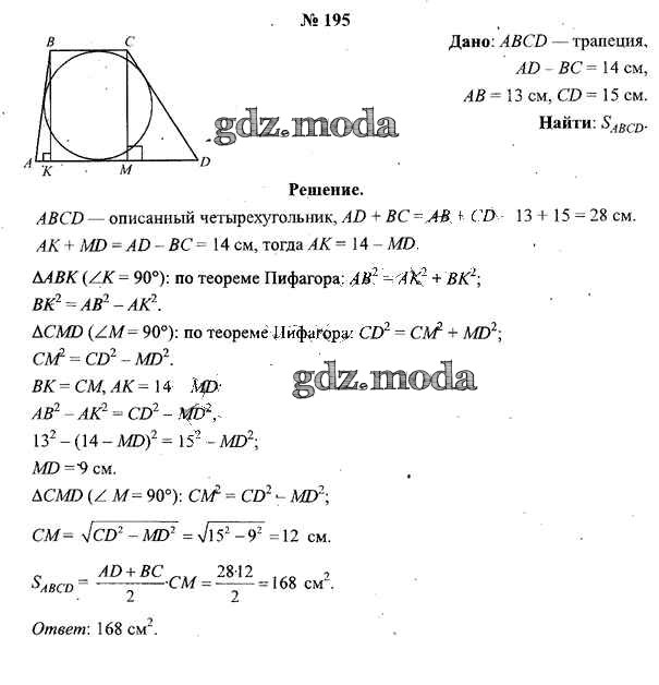 ОТВЕТ на задание № 195 Учебник по Геометрии 9 класс Шлыков