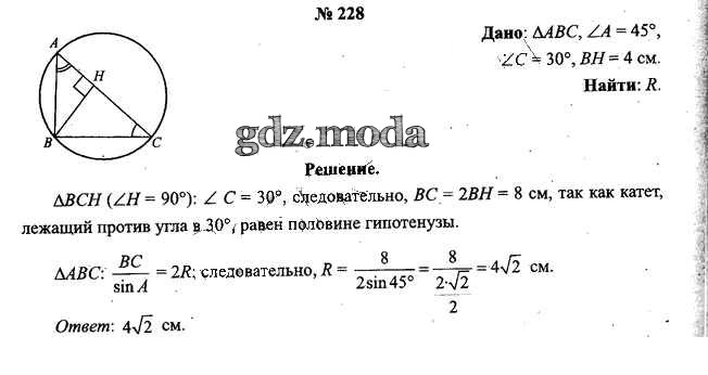 ОТВЕТ на задание № 228 Учебник по Геометрии 9 класс Шлыков