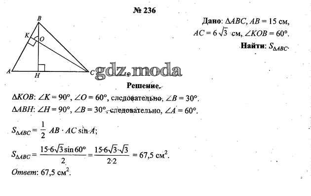 ОТВЕТ на задание № 236 Учебник по Геометрии 9 класс Шлыков