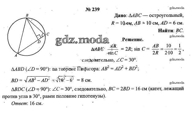 ОТВЕТ на задание № 239 Учебник по Геометрии 9 класс Шлыков