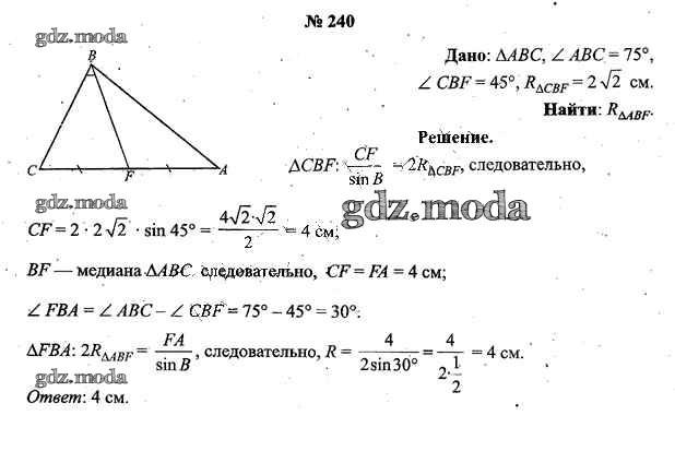 ОТВЕТ на задание № 240 Учебник по Геометрии 9 класс Шлыков
