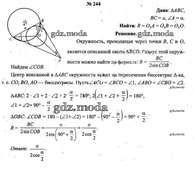 ОТВЕТ на задание № 244 Учебник по Геометрии 9 класс Шлыков