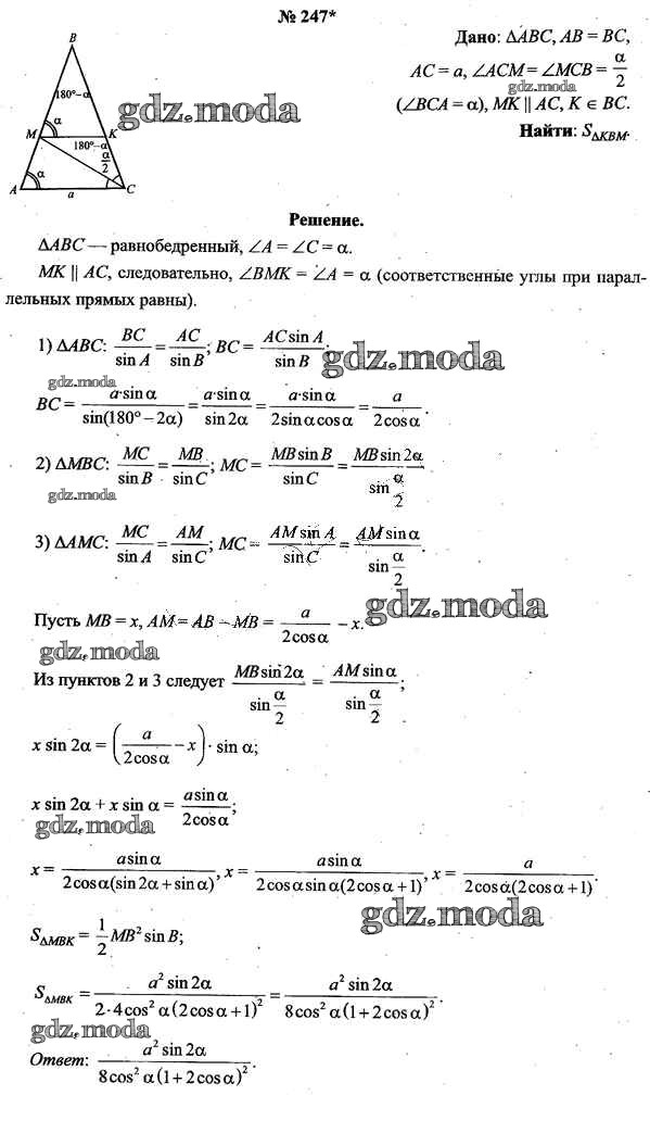ОТВЕТ на задание № 247 Учебник по Геометрии 9 класс Шлыков