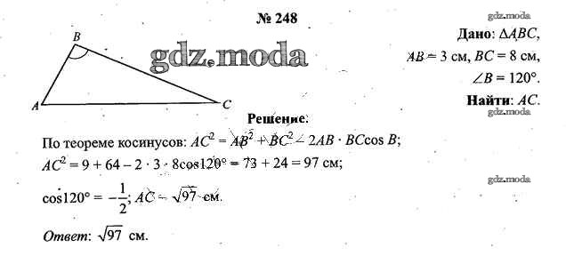 ОТВЕТ на задание № 248 Учебник по Геометрии 9 класс Шлыков