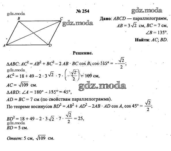 ОТВЕТ на задание № 254 Учебник по Геометрии 9 класс Шлыков