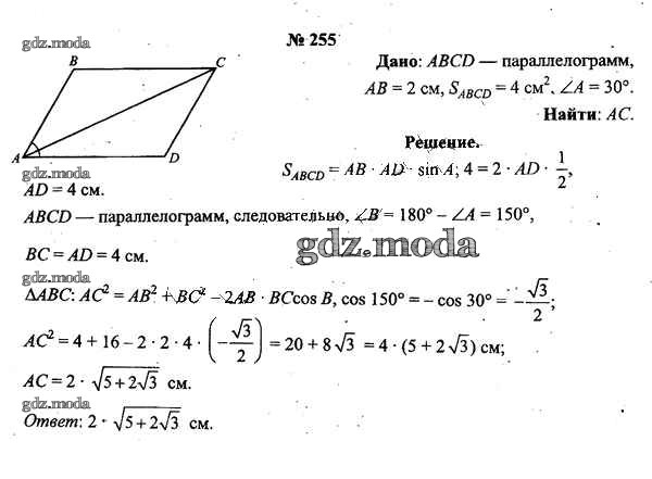 ОТВЕТ на задание № 255 Учебник по Геометрии 9 класс Шлыков