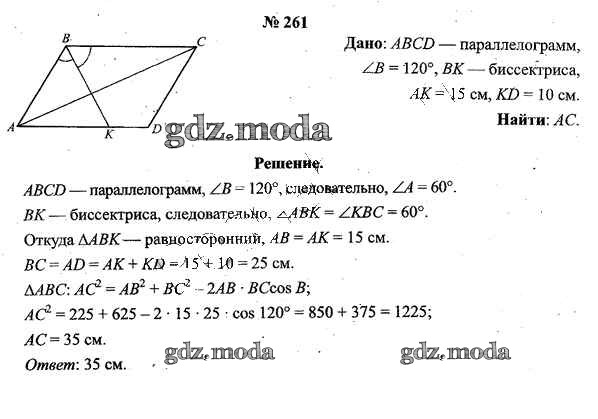 ОТВЕТ на задание № 261 Учебник по Геометрии 9 класс Шлыков