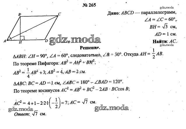 ОТВЕТ на задание № 265 Учебник по Геометрии 9 класс Шлыков