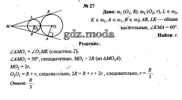 ОТВЕТ на задание № 27 Учебник по Геометрии 9 класс Шлыков