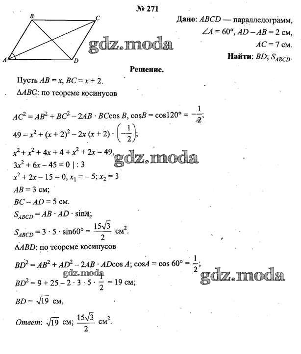 ОТВЕТ на задание № 271 Учебник по Геометрии 9 класс Шлыков