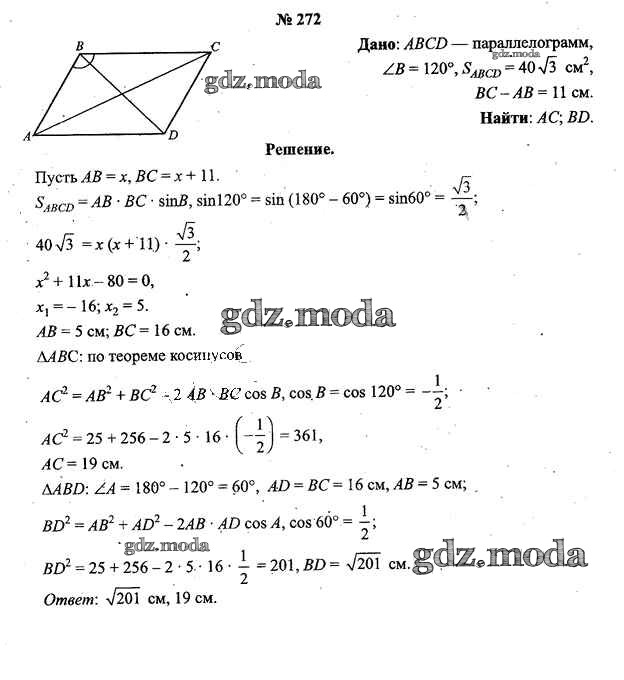 ОТВЕТ на задание № 272 Учебник по Геометрии 9 класс Шлыков