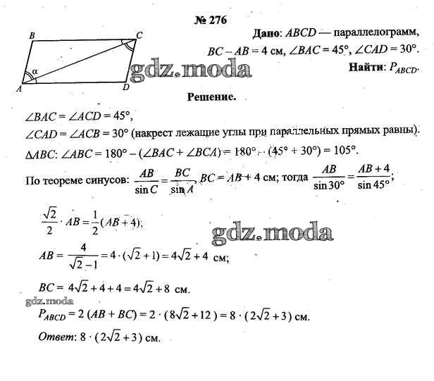 ОТВЕТ на задание № 276 Учебник по Геометрии 9 класс Шлыков