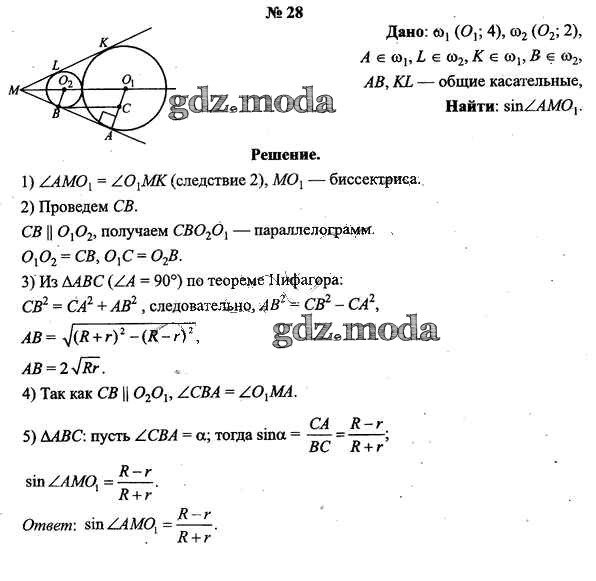 ОТВЕТ на задание № 28 Учебник по Геометрии 9 класс Шлыков